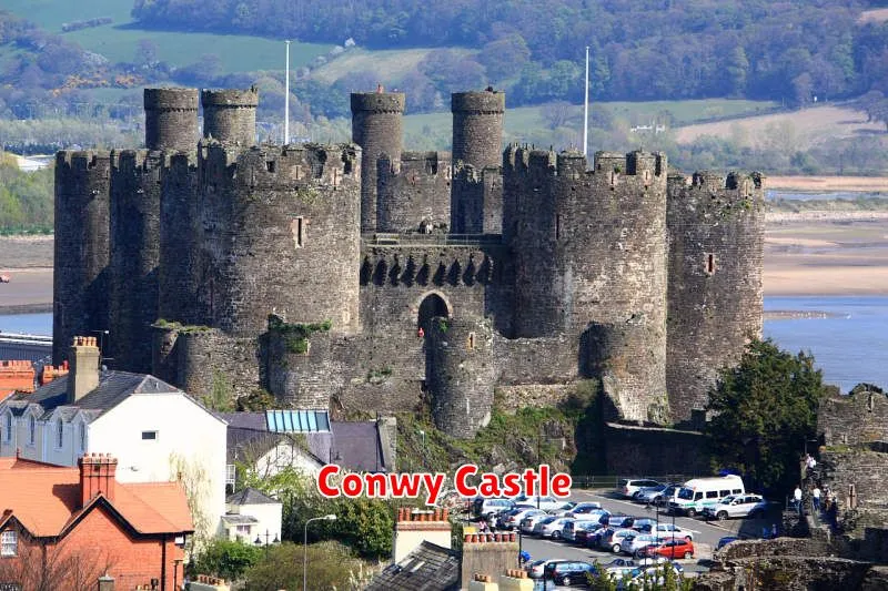 Within the castle walls, visitors can explore the preserved royal apartments, the chapel, and the extensive battlements offering panoramic views of the surrounding area, including the Conwy Estuary and Snowdonia National Park.