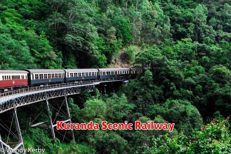 The Kuranda Scenic Railway offers a remarkable journey through the lush rainforests of Tropical North Queensland. This historic railway winds its way from Cairns to Kuranda, a charming mountain village.
