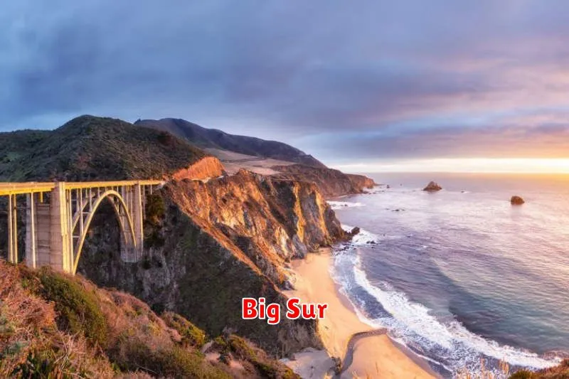Highway 1, which winds along the coastline, offers breathtaking views. Pfeiffer Big Sur State Park is a popular destination for hiking and camping amongst the redwood trees. Be sure to visit Bixby Bridge, an iconic concrete arch bridge that spans a deep gorge.