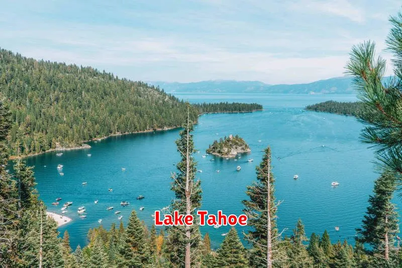 Straddling the California-Nevada border, Lake Tahoe is a spectacular freshwater lake known for its stunning beauty and recreational opportunities. Nestled high in the Sierra Nevada mountains, the lake boasts crystal-clear waters and is surrounded by towering peaks.
