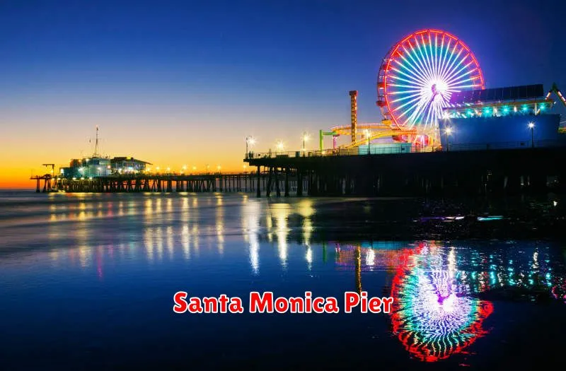 Pacific Park, located on the pier, features a Ferris wheel offering panoramic views of the coastline. Visitors can also enjoy a variety of other rides and games. Beyond the amusement park, the pier offers dining options, shops, and opportunities for fishing.