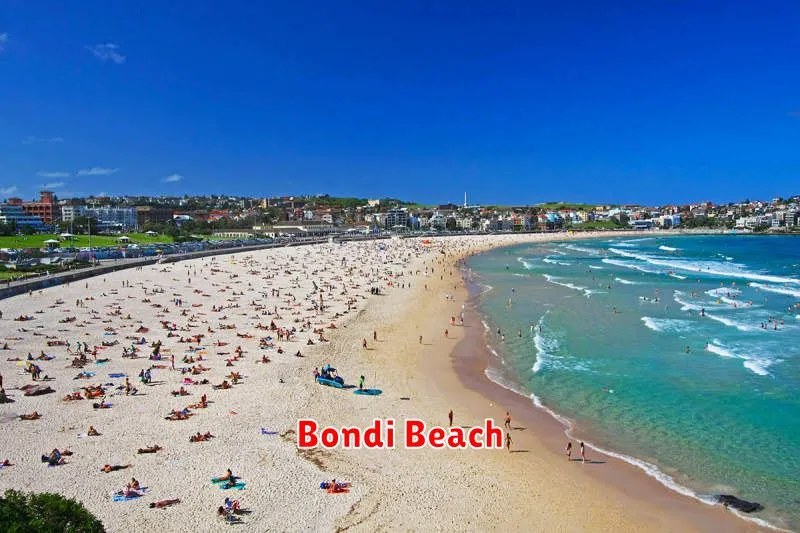 Bondi Beach is arguably Australia’s most famous beach. Located in Sydney’s eastern suburbs, it’s a vibrant hub of activity, attracting both locals and tourists alike. The beach itself is approximately one kilometer long, providing ample space for sunbathing, swimming, and surfing.