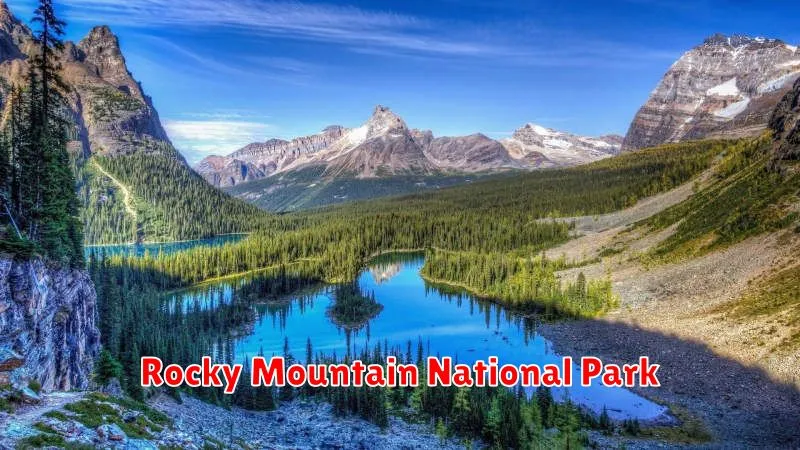 Located in north-central Colorado, Rocky Mountain National Park offers breathtaking alpine scenery. Trail Ridge Road, the highest continuous paved road in the US, traverses the park, offering stunning views. Visitors can experience a variety of ecosystems, from montane forests to tundra.