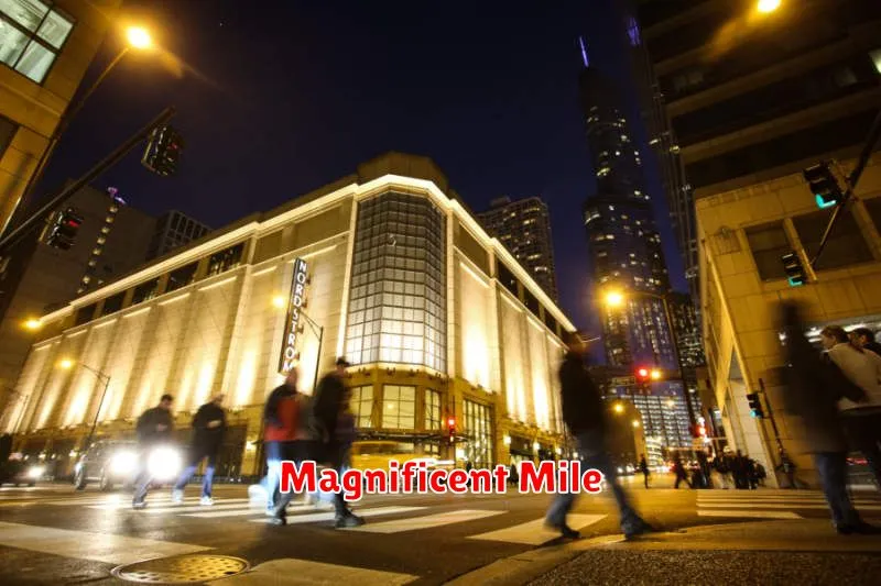The Magnificent Mile is a premier shopping destination located on Michigan Avenue, stretching from the Chicago River to Oak Street. It features a mix of luxury boutiques, department stores, and flagship retail spaces.