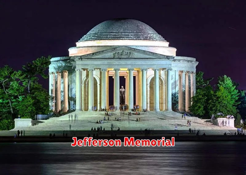 The Jefferson Memorial is a neoclassical monument honoring Thomas Jefferson, the third President of the United States. Located on the Tidal Basin, its design, reminiscent of the Pantheon, features a circular colonnade surrounding a statue of Jefferson.